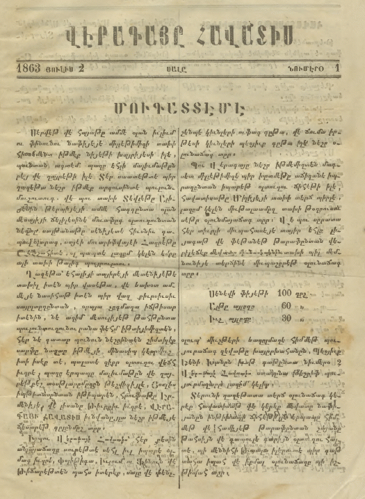 <br/><a href= " https://arar.sci.am/dlibra/publication/448792?language=hyw#structure"> <b> 1863</a></b> Նումէրօ 1 - Նումէրօ 62: