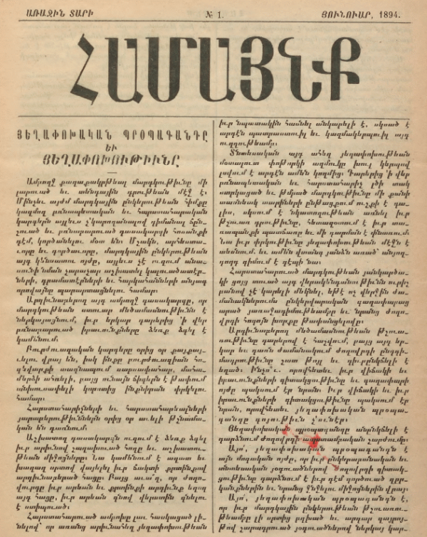 ՀԱՄԱՅՆՔ : Հրատարակիչ-խմբ.՝ Ալեքսանդր Աթաբեկեան, W. Voynich.