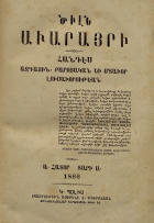 Publication details: Կ. Պօլիս : ՏՊԱԳՐՈՒԹԻՒՆ Ռուբենի Յ․ Քիւրքճեան, ՏՊԱԳՐՈՒԹԻՒՆ Ա. Վարդանեան, ՏՊԱԳՐՈՒԹԻՒՆ Յովսէփ Գավաֆեան, ՏՊԱԳՐՈՒԹԻՒՆ Յ. Գավաֆեան եւ Յ. Պարոնեան, ՏՊԱԳՐՈՒԹԻՒՆ Ս․ Պարտիզպանեան եւ Ընկերք, ՏՊԱԳՐՈՒԹԻՒՆ Միքայէլ Կ․ Սարըեան, ՏՊԱԳՐՈՒԹԻՒՆ Ե․ Մ․ Տնտեսեան, ՏՊԱԳՐՈՒԹԻՒՆ Զարդարեան, ՏՊԱԳՐՈՒԹԻՒՆ Արամայ Աշճեան, ՏՊԱԳՐՈՒԹԻՒՆ Կարապետ Պիպէրեան, ՏՊԱԳՐՈՒԹԻՒՆ Ս․ Նիկողոսեան, ՏՊԱԳՐՈՒԹԻՒՆ Յ․ Ասատուրեան, ՏՊԱԳՐՈՒԹԻՒՆ (ԱՍԸՐ) Գ․ Պ․ Գայսէրեան, ՏՊԱԳՐՈՒԹԻՒՆ Սագաեան, ՏՊԱԳՐՈՒԹԻՒՆ Զարեհ Ն․ Պէրպէրեան 1866-1908
