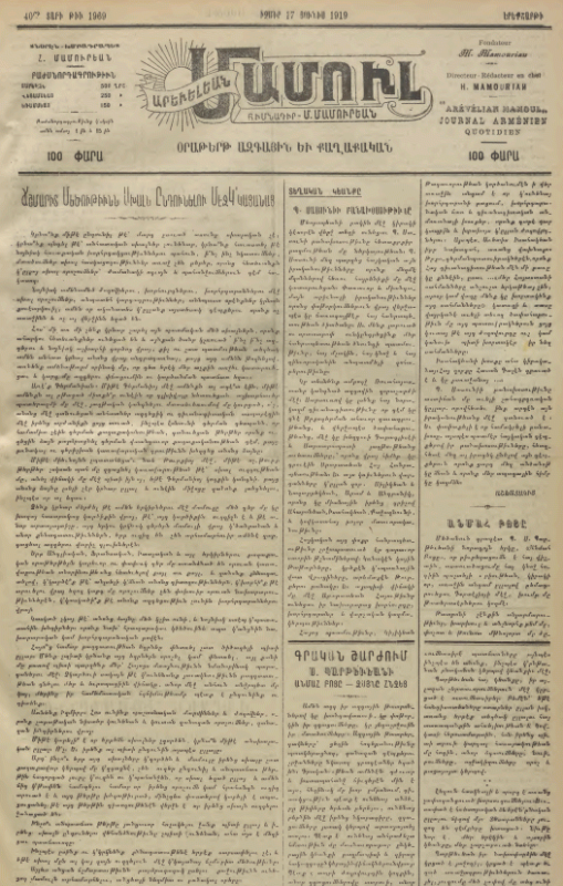 ԱՐԵՒԵԼԵԱՆ ՄԱՄՈՒԼ : Օրաթերթ Ազգային ԵՒ Քաղաքական = Arévélian Mamoul : Journal Arménien Quotidien /