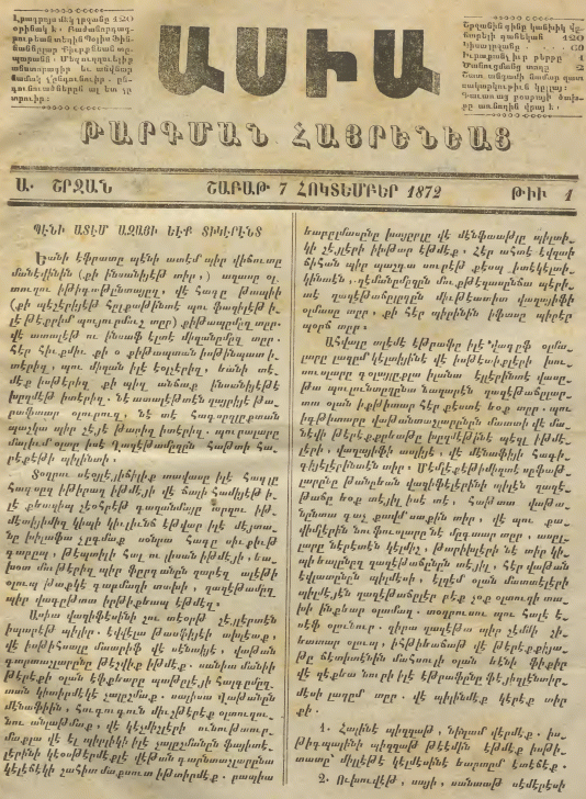 Publication details: Կ. Պօլիս ։ ՏՊԱԳՐՈՒԹԻՒՆ Յ. ԳԱՎԱՖԵԱՆ, ՏՊԱԳՐՈՒԹԻՒՆ Ս. ՄԻՔԱՅԷԼԵԱՆ, ՏՊԱԳՐՈՒԹԻՒՆ Յ. ԹՕԶԼԵԱՆ, ՏՊԱԳՐՈՒԹԻՒՆ Ե․ Մ․ ՏՆՏԵՍԵԱՆ, ՏՊԱԳՐՈՒԹԻՒՆ ՍԱՄՈՒԷԼ Ղ. ՊԱՐՏԻԶՊԱՆԵԱՆ ԵՒ ԸՆԿ., ՏՊԱԳՐՈՒԹԻՒՆ ՊՕՂՈՍԻ ՔԻՐԻՇՃԵԱՆ, 1875-1877