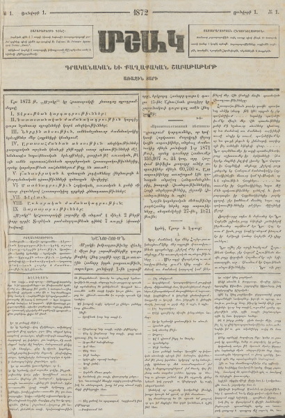 Publication details: Թիֆլիս : Ծէրէթէլի և ընկ (նախկին Դուբէլիրի) տպարան, Մէլիքովի և ընկ․ տպարան, Типографiя Главного Управленiя Намъстника Кавказского, Типографiя Энфiаджiанцъ и К․, Типографiя Мартиросiанца, Տպարան Ա․ Ա․ Միխելսոնի, Տպարան եղբայրք Դաւիթեանցներ, Типографiя Грузинская, Տպարան Электропечатна Грузинская, Տպարան Հերմէս, Տպարան Электропечатная ЭКОНОМIЯ, Տպարան Էլէքտրատպարան օր․ Ն․ Աղանեանի, Տպարան Типографiя канцелярiи Намъстника Его Императорского Величества на Кавказъ, Տպարան Электропечатная Ав. Мугдусiакопова, Տպարան Պրօգրէս, Տպարան Պօղոսեան և Ընկ․, Տպարան Սլօվօ։ 1872-1921